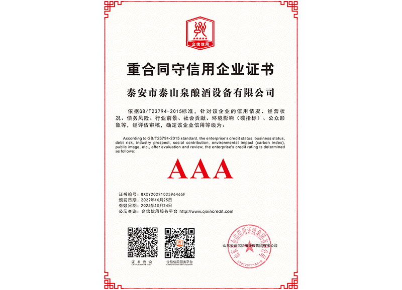 泰安市泰山泉釀酒設(shè)備有限公司,是一家專(zhuān)業(yè)從事釀酒設(shè)備機(jī)械化研發(fā)并集技術(shù)咨詢,工程設(shè)計(jì),制造安裝,人員培訓(xùn)及售后服務(wù)為一體的綜合性企業(yè),本公司主要產(chǎn)品為:大曲清香、小曲清香、大曲醬香、大曲濃香等香型白酒機(jī)械化設(shè)備。 本公司與中國(guó)科學(xué)院自動(dòng)化研究所簽訂技術(shù)服務(wù)合同,引進(jìn)先進(jìn)技術(shù),研究生產(chǎn)全自動(dòng)化機(jī)械釀酒設(shè)備,由中國(guó)科學(xué)自動(dòng)化研究所的技術(shù)支持,打造最先進(jìn)的生產(chǎn)釀酒設(shè)備,公司有信心打造全國(guó)最先進(jìn)白酒...